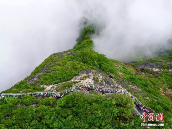 如果是雨后初晴的清晨,有幸可看到浩瀚云海在重峦叠嶂之间缓缓流动,如幻似梦,宛若人间仙境。