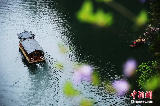 宝峰湖上泛舟。吴勇兵摄