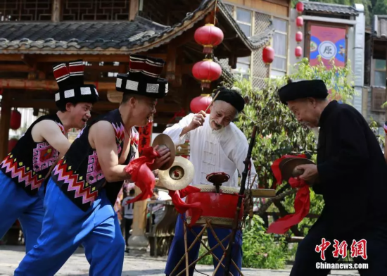民间艺人表演“土家打溜子”。 吴勇兵 摄