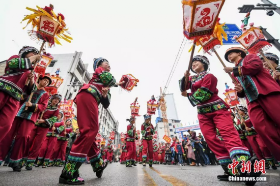 民间艺人表演《唱花灯》。吴勇兵 摄