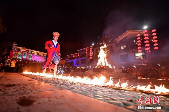 土家族巫师挑战走“火海”。杨华峰 摄