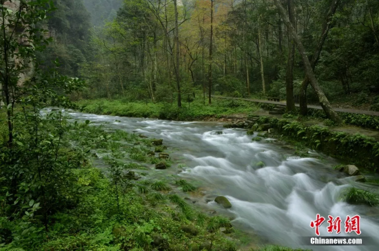 张家界国家森林公园内的金鞭溪,蜿蜒曲折,随山而行,即使久旱,也不会断流。