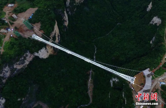 玻璃桥底下是约300米深的大峡谷,低头俯瞰,不禁让人眩晕。