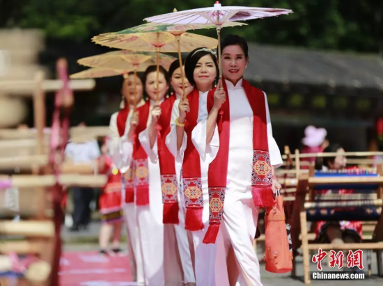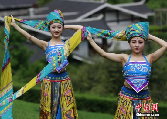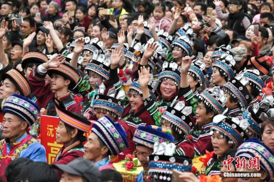年轻姑娘上演苗族头帕秀。吴勇兵 摄