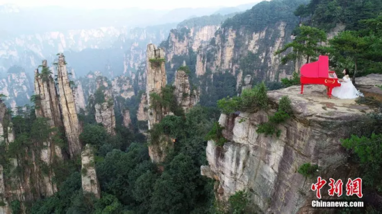 钢琴爱好者在天子山峰林之巅演奏。吴勇兵 摄