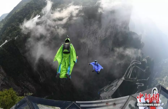 在天门山举行的世界翼装飞行锦标赛。杨华锋摄