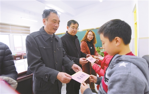 11月8日,泉山区苏山街道党工委协同辖区非公企业来到苏山小学和城北中学,为贫困学生送去助学金,让他们在冬日里感受到社会的温暖。本报全媒体记者 孙井贤 摄