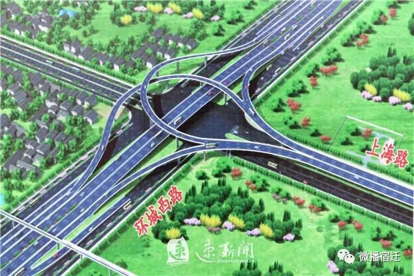 项目南起宿迁收费站新址,北至浦东路交叉口,路线全长约7.245km。按照主辅路相结合的标准建设,主路设计车速80km/h、机动车双向6车道,主要服务客运交通;辅路设计车速40km/h、机动车双向4车道,客货均可通行。