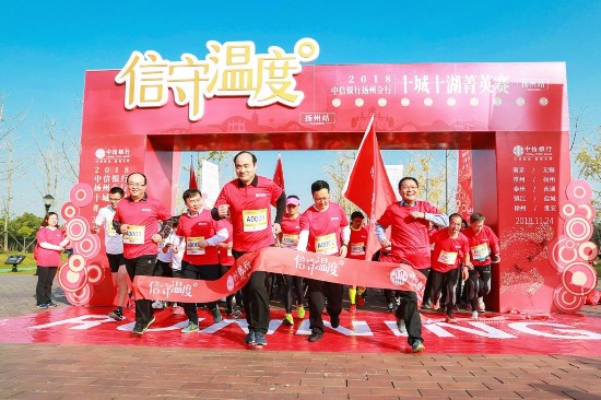 24日,在宋夹城体育休闲公园,全程6.4公里的“2018年‘信守温度’十城十湖菁英赛”扬州站鸣枪开跑。与此同时,江苏省内十座城市联动,十大湖畔同步开跑。本次活动由中信银行扬州分行主办,近400名战略客户、机构客户、贵宾客户,以及中信银行员工和中信集团旗下协同单位代表共同参与。