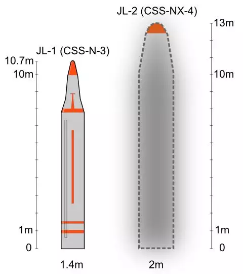 ▲外媒猜测制作的巨浪-1型导弹与巨浪-2型导弹外形对比图