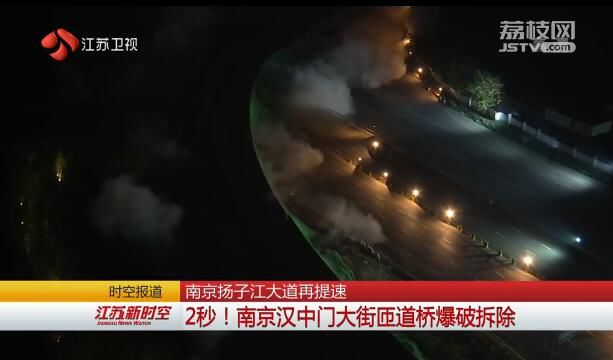 11月24日晚10点钟,南京汉中门匝道桥成功爆破,全程持续了2秒钟。
