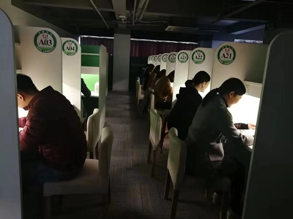 在最靠角落的一张桌子内,身材小小的小张陷入寂静的空间内,专心攻读公务员考试资料。她告诉记者,12月1日、2日就要迎来国家公务员考试,现在是关键的冲刺备考阶段。“在家里复习、刷题总是会分心。一会去倒杯水,一会又去逗逗宠物猫。”小张说,之前她也曾经去公共图书馆看书,但是容易被周边走动的人、声所干扰。“在研磨院,空间更私密,还能根据我们的需求,延长服务时间,非常灵活。”小张告诉记者,沉浸在高效的学习氛围中,内心很充实,“这段时间来这里加班加点冲刺的,几乎都是报名公务员考试的年轻人。感觉自己不是孤独地奋斗,而是一群人为了共同的目标在努力。”