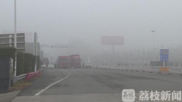 从11月18日晚开始,宿迁市泗阳出现了大雾天气,淮徐高速泗阳段实行交通特级管制,禁止车辆通行。