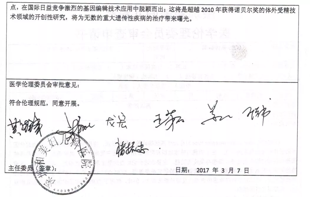 二、对于贺建奎副教授将基因编辑技术用于人体胚胎研究,生物系学术委员会认为其严重违背了学术伦理和学术规范。