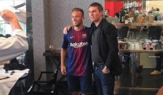 当年格雷米奥球员阿图尔穿巴萨球衣拍照