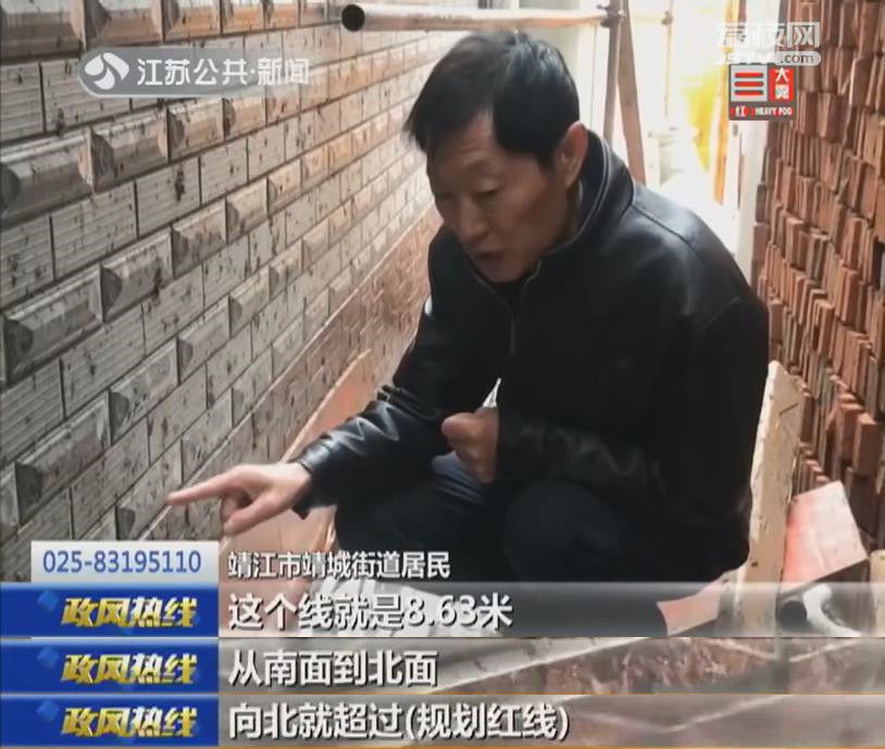 靖江市靖城街道居民:“这个线就是8.63米从南面到北面,向北就超过。”