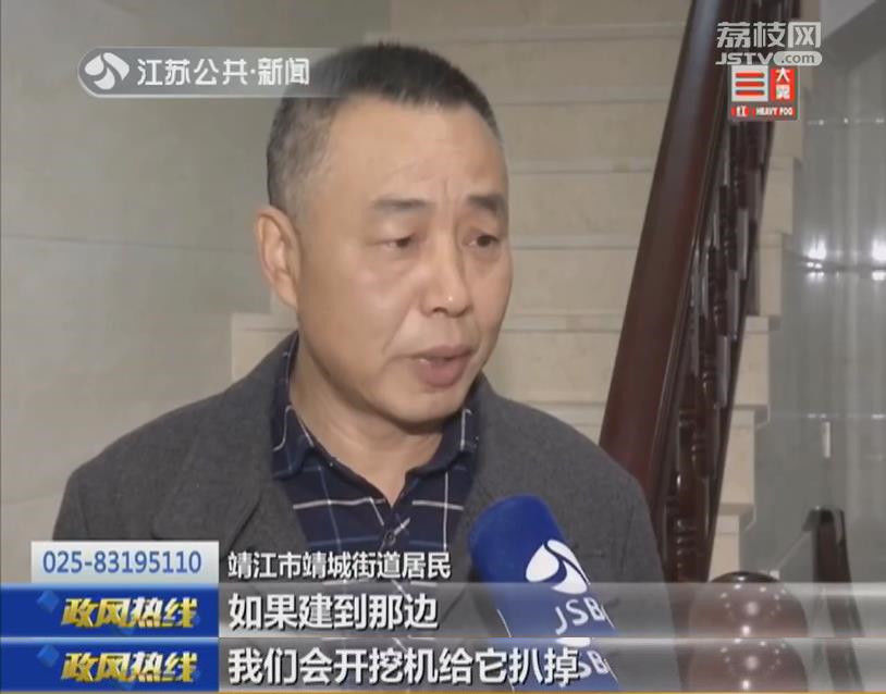 靖江市靖城街道居民:“发现钢筋网已经超出了批复范围,当时靖城规划中队给我的答复是,他不可能建到那边这有我们管理,如果他建到那边我们会开挖机把它扒掉”