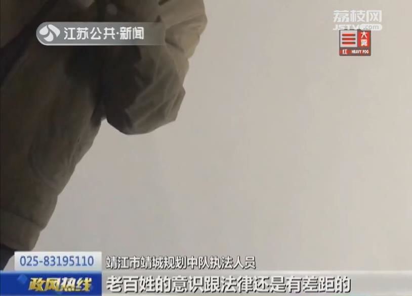 靖江市靖城规划中队执法人员:“我们送达了整改通知书,一般老百姓都听的,也有一些老百姓他不懂法,老百姓的法律意识也是有差距的。”