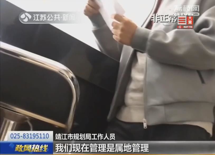 靖江市规划局工作人员:“我们现在管理是属地管理,政府跟他们街道签了合同违法建设,规划中队还是街道负责,看谁盖章的就是靖城街道办,中队也是属于靖城街道办(管理)。”
