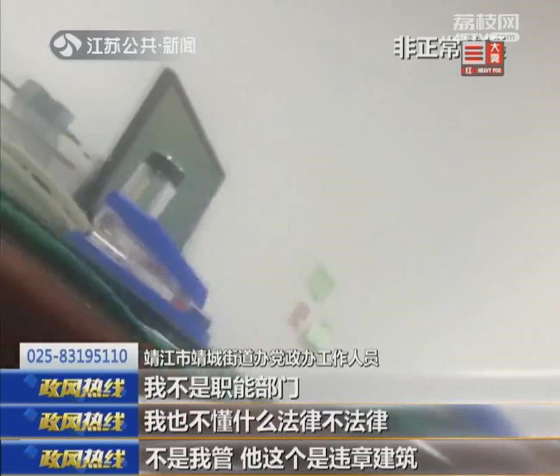 靖江市靖城街道办党政办工作人员:“我不是职能部门,我也不懂什么法律不法律,不是我管他这个是违章建筑,我们反正有专门的执法部门。”