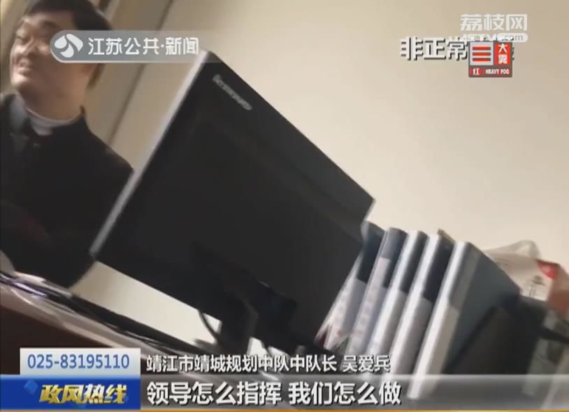 靖江市靖城规划中队中队长吴爱兵:“这个你也不要问我,这是领导的问题,领导怎么指挥我们怎么做,呵呵。”