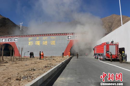 此次演练在拉萨市柳梧新区邦嘎隧道展开,隧道全长1920余米。