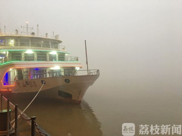 连日来,南京持续雾霾天气。27日清晨,长江南京段江面大雾弥漫,轮渡宁浦线根据海事部门要求停航。