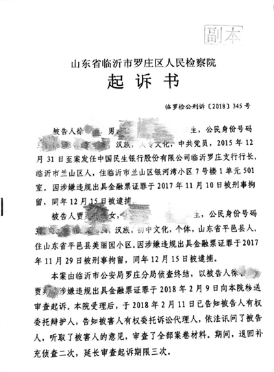 犯罪嫌疑人徐某涉嫌违规出具金融票证罪,被临沂市罗庄区人民检察院公诉。受访者供图
