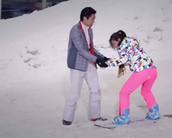 韩国奇幻爱情剧《蓝色大海的传说》里,俊宰(李敏镐饰)说:“首尔的初雪结束了,我们去没下雪的地方等初雪吧。”俊宰在滑雪场教沈清(全智贤饰)滑雪,刚开始介绍,沈清就冲下坡去,速度越来越快,不会刹车的沈清吓得花容失色惊叫连连。俊宰在身后迅速用力追赶,及时滑到了沈清的路线前,抛开雪杖,伸出双臂摆出“大”字造型迎候在那里。
