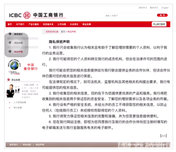 中国工商银行App没有单独的隐私政策,链接中仅提供隐私保密声明。