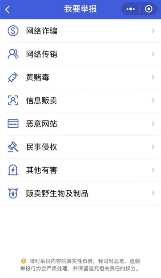 小程序投诉:搜索“腾讯110”小程序—我要举报—选择类别—填写举报内容