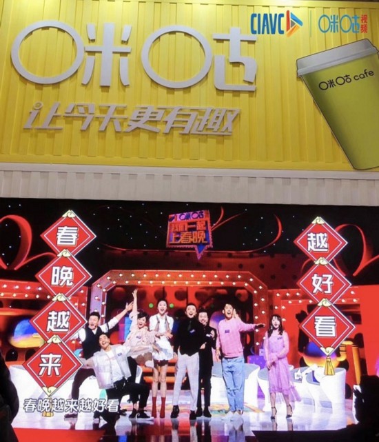 咪咕咖啡展区入口的大屏上轮播了咪咕视频最新上线的热播综艺及短视频,其中《我们一起上春晚》、《中国国宝大会》等文化IP引来参会者的围观。