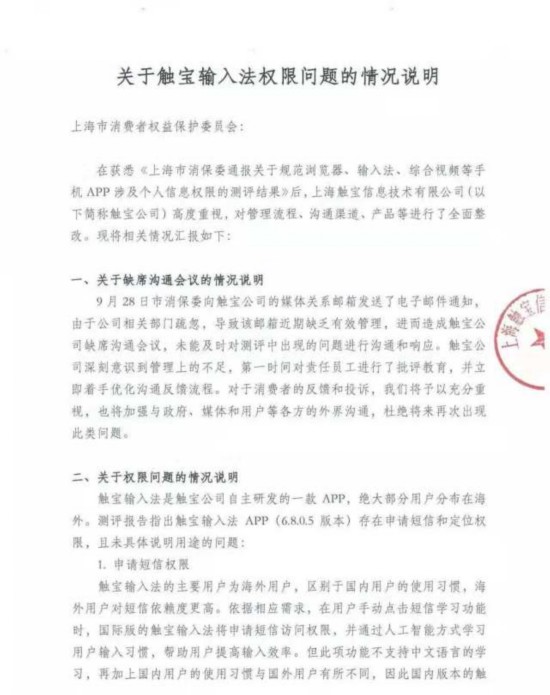 11月30日晚间,上海市消保委通报称,11月30日上午,之前未参加新闻发布会的触宝输入法、猎豹浏览器、芒果TV主动到上海市消保委进行沟通,并就相关APP改进措施和时间节点作了说明。上海市消保委对三家企业的积极回应和行动表示欢迎。