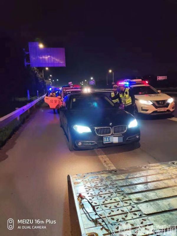 11月16号晚上11点多,南京高速交警二大队民警在绕城公路巡逻至华电立交附近时,发现一辆黑色宝马轿车停在行车道上,且没有开启双跳警示,民警屡次鸣笛该车均不驶离或启动。