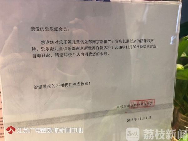 为什么突然停止营业,还没有消费完的卡怎么办?对此,南京乐乐派儿童乐园的工作人员解释说,11月30号乐乐派儿童乐园和商场的租约正式到期,且乐乐派不打算再续约。于是在一个月前开始通知消费者进行登记,从闭店停业这天算起,将在40个工作日内退款到消费者的支付宝账号。