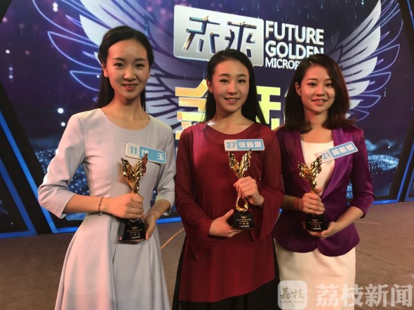 ▲播音专业前三名,左起季军代玉,冠军徐睿思,亚军周紫卿