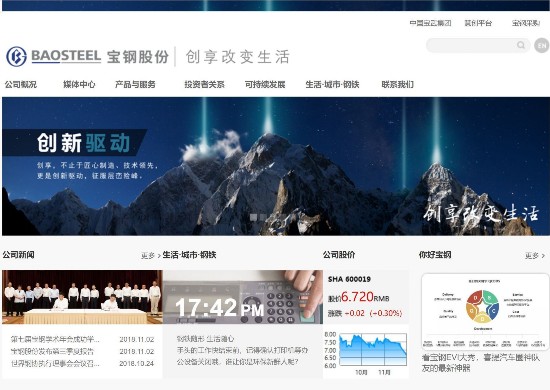 中国宝武钢铁集团有限公司,是国务院国有资产监督管理委员会监管的国有重要骨干企业,总部位于上海。子公司宝山钢铁股份有限公司是中国最大、最现代化的钢铁联合企业。宝钢股份坚持走“创新、协调、绿色、开放、共享”的发展之路,拥有享誉全球的品牌、世界一流的技术水平和服务能力。公司注重创新能力的培育,积极开发应用先进制造和节能环保技术,建立了覆盖全国、遍及世界的营销和加工服务网络。