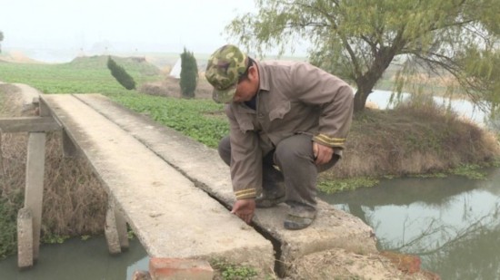 兴化市荻垛镇廷良村村民陈宝旺:“这个五六年前就要倒了,这个桥桩断掉了,重弄的桥桩,那边的断掉了就搁在岸上,用钢筋绑在水泥柱子上,不是绑住就塌下来了。”