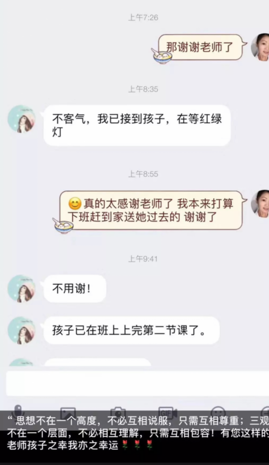 第一时间把徐梦菲接到学校后,张青及时向孩子母亲报了平安。