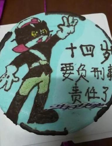 近日,马鞍山公安发了一张名为“一个警察子女的十四岁生日”的图片。图片里,生日蛋糕上画了一个黑猫警察,旁边写着几个大字——十四岁要负刑事责任了。