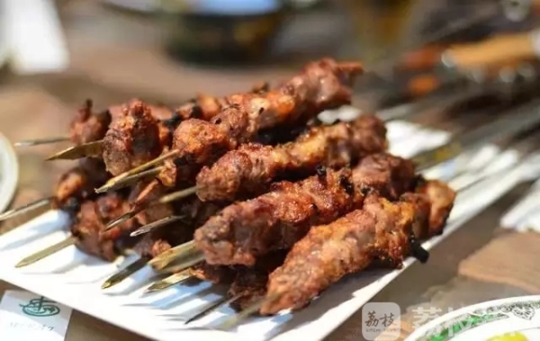 烤羊肉串是在特制的烤肉铁槽上烤制而成。先将精羊肉切成3平方厘米见方的薄片,依次穿上铁钎,置放在烤肉槽上,一边用煤火烤,一边撒上精盐、辣椒粉、孜然粉等佐料,3~5分钟左右翻烤另一面,几分钟后即可食用。街边就有很多。