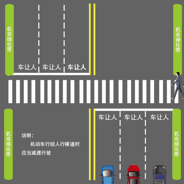 根据《中华人民共和国道路交通安全法》第四十七条规定:机动车行经人行横道时,应当减速行驶;遇行人正在通过人行横道,应当停车让行。机动车行经没有交通信号的道路时,遇行人横过道路,应当避让。