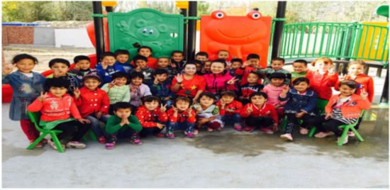 我还清晰地记得第一天到阿西村的情景,整个村子里最漂亮的建筑就数幼儿园,教室里铺的都是雪白的瓷砖,有现代化的一体机、崭新的电子琴、整洁的床铺。第一天走进教室,原本有些紧张,但当34张天真的面孔对我露出灿烂的笑容,我的心情瞬间平静了。这所新建的幼儿园让我真切地感受到国家对南疆教育投入的力度。“努力让每个孩子都能享有公平而有质量的教育”,十九大报告中这句温暖人心的话语让我坚定了做好支教工作的信心。