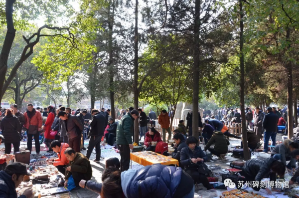 在苏州,说起碑刻博物馆,大家可能有些陌生。但说起文庙,老苏州一定都知道;并且脑海里第一个浮现出来的一定是古玩市场。苏州碑刻博物馆2018年4月开始进行内部维修,为确保施工期间的安全,4月1日起关闭周末古玩地摊市场。古玩市场也迁移到了距苏州碑刻博物馆南大门300米的古玩文化创意园(苏州市姑苏区新市路2号)。