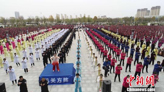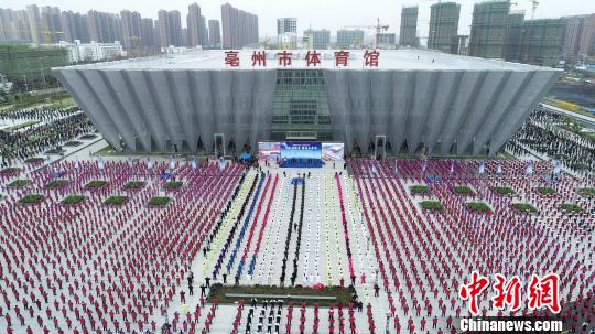 中新网亳州12月5日电 (记者 张俊)12月5日,50万人同时习练五禽戏展示活动在五禽戏之乡——安徽省亳州市举行。