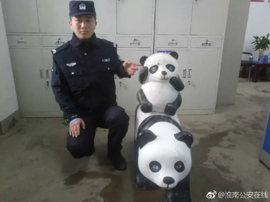 12月2日晚,安徽省淮南市公安局民警接到一起涉嫌偷盗警情。民警到了一看,偷的竟是两只国宝“熊猫”。原来,一男子路过某公司门口,见摆放的熊猫塑像可爱,一时没忍住想“带”回家给孩子玩。因偷窃价值不大,民警对其进行批评教育。