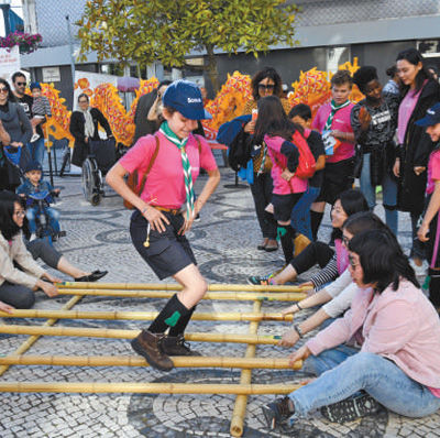 阿威罗大学孔子学院的学生表演竹竿舞。 新华社发