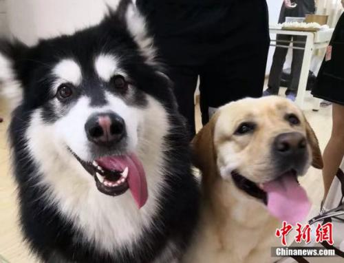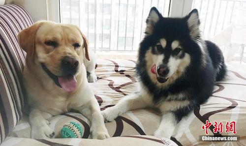 Sunday是一只阿拉斯加雪橇犬,强森是一只拉布拉多犬,两只狗从小一起长大,都住在成都高新区的同一小区内,已经在一起玩了将近两年。