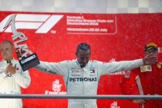 汉密尔顿在德国大奖赛颁奖仪式
