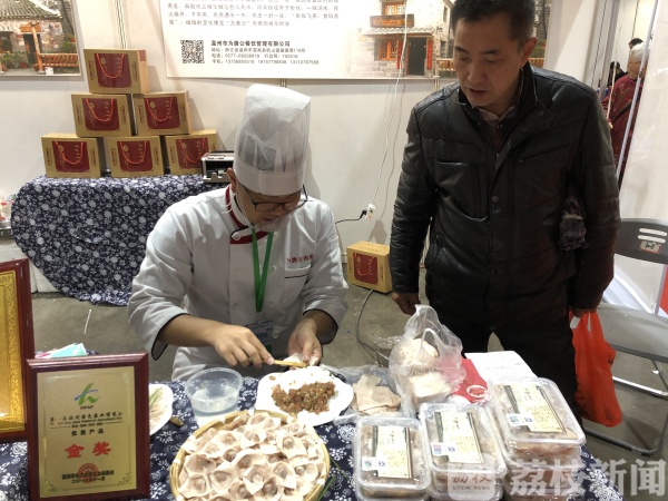 此外,展会还组织20家农家特色小吃商家参展,带来了新昌炒年糕、缙云烧饼、苍南矾山肉燕、永康肉麦饼等数十种当地的名小吃,供逛展的市民现场尝鲜,不少市民甚至现场讨教起做法。